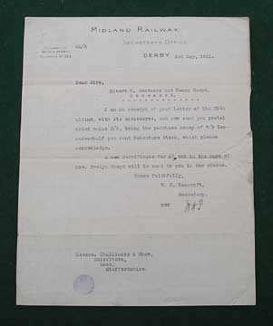 The Trust was a registered charity formed in September 2000 to make the comprehensive Midland Railway collection assembled by Roy Burrows accessible to the public for educational purposes. Roy started collecting in the early 1950s. When the Trust was formed, it was estimated there were around 20,000 items in the collection, but after a number of years cataloguing it was found to be rather more than this! Further acquisitions have also been made over the years of the Trust’s existence and there are now in excess of 42,000 items: all are catalogued. The collection is probably the largest of its kind in the UK being devoted exclusively to a single pre-grouping railway company and its constituents.