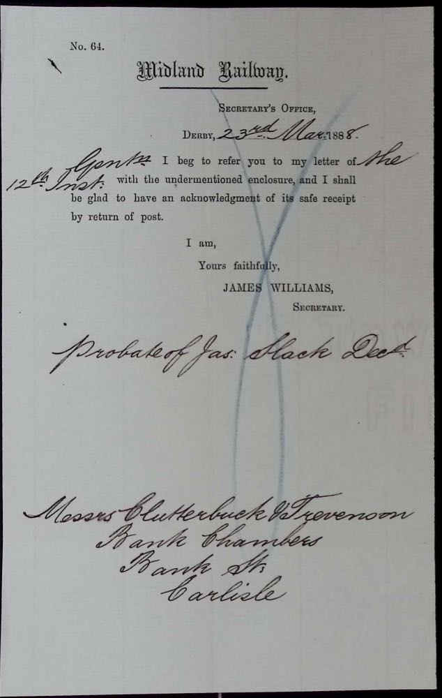 Our September Open Weekend had the theme of “Railway People”. The presentation for that event used some case studies to shine light on the less well known corners of the two main genealogy websites so far as railway records are concerned, as well as showcasing the range of staff records held in the Midland Railway Study Centre. We then focused on the stories of a few interesting Midland Railway characters. If this sounds interesting, you could have joined us on Saturday 13th or Sunday 14th September. The talks were at 11:30 and repeated at 14:30. The informal nature of the presentation means that it cannot be repeated online.