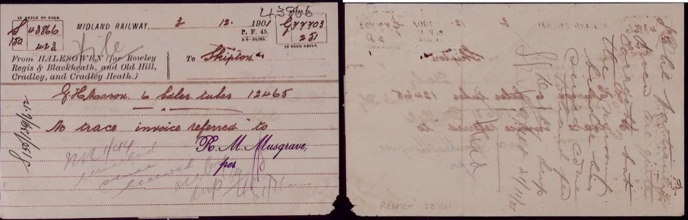 The Victorian railway is said to have had a bureaucracy second only to the civil service. Frankly, with the myriad of passengers and goods of near-infinite variety moving around the network, all to be accounted for and revenue collected (or compensated when things went wrong), I think the railway's army of clerks would have run rings round their government counterparts. Here's an example of when things didn't go quite right, and indeed got rather terse. Click or tap the image for a larger version.
