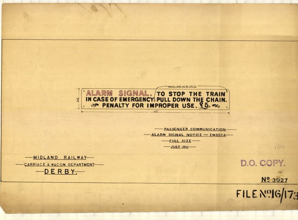 Our Carriage & Wagon collection comprises many hundreds of drawings created by the Midland Railway's draughtsmen at the Company's Litchurch Lane works here in Derby. These drawings are invariably works of art in their own right and are not only of complete vehicles but many components too. When BREL took over the Works in the 1970s they inherited what appeared to be a drawing of every type of vehicle produced at the Works since it opened in 1875. Luckily for us, they had the foresight to contact Derby Museum when they wanted to create some space, rather than have a bonfire!