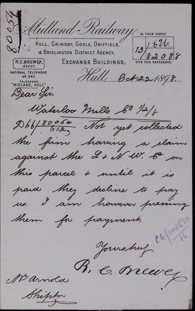 The Victorian railway is said to have had a bureaucracy second only to the civil service. Frankly, with the myriad of passengers and goods of near-infinite variety moving around the network, all to be accounted for and revenue collected (or compensated when things went wrong), I think the railway's army of clerks would have run rings round their government counterparts. Here's an example of when things didn't go quite right, and indeed got rather terse. Click or tap the image for a larger version.